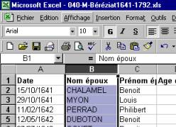 colonne B), toute la ligne ou colonne se surligne en bleu |