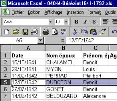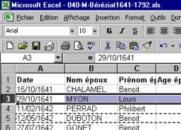 cliquant avec la souris sur le n° identifiant